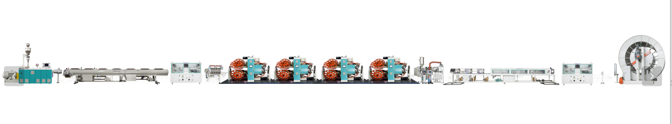రీన్ఫోర్స్డ్ థర్మోప్లాస్టిక్ పైప్ (RTP) ఎక్స్ట్రూషన్ లైన్, ఇది ప్రత్యేకంగా రీన్ఫోర్స్డ్ థర్మోప్లాస్టిక్ నాన్-మెటాలిక్ వైర్ రీన్ఫోర్స్డ్ ఫ్లెక్సిబుల్ కాంపోజిట్ పైప్ ఉత్పత్తికి ఉపయోగించబడుతుంది, ఇది యునైటెడ్ స్టేట్స్లో తాజా సాంకేతికతను పరిచయం చేసింది. హై-ఎండ్ G-రకం EU ప్రమాణాలను స్వీకరిస్తుంది మరియు ఉత్తర అమెరికాలోని హై-ఎండ్ U-రకం ఉత్తర అమెరికా ప్రమాణాలను స్వీకరిస్తుంది. మొత్తం సిరీస్ GRAEWE FANGLI బ్రాండ్ ప్రకారం కాన్ఫిగర్ చేయబడింది.